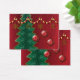 Camadas de fractais constituem esta design de Natal estilizada. Um pano de fundo vermelho acinzentado, uma árvore verde pontiaguda, estrelas douradas e flocos de neve pendurados numa fita de miçangas vermelhas e douradas, e três bolas vermelhas com uma design de ouro girando pendurada na frente.