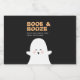 "BOOS & BOOZED" Mídia de álcool do Halloween com um fantasma branco de desenho animado com fundo preto e texto branco e laranja. Minimalista, moderno e divertido. Todo texto é personalizável, personalize com breve saudação, ano e nome. Excelente para a festa temática do Halloween ou presente de Halloween para adultos.