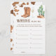 Este design apresenta cores neutras modernas em uma aplicação de aquarela. Design em impressão de vaca, copo de champanhe, cacto do deserto, botas de cowboy.
