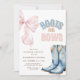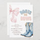 Celebre a antecipação do gênero do seu pequeno com nosso belo projeto Boots ou Arcos Tema Gender Reveal Invitation. Perfeito para uma festa de revelação de gênero no oeste ou no rodeio, este convite apresenta um belo arco rosa e um par de botas de vaqueiro simbolizando o clássico tema "Ele ou ela".