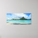Impressão de paisagem canvas de Panorama de um bangalô sobre-água resort na clara lagoa azul de Bora Bora, uma ilha de lua de mel no arquipélago francês do Taiti.