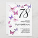 Borboleta 78.º Convite de Aniversário em Rosa/Roxo
