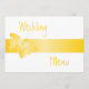 Design de borboleta amarela do menu janto de casamento. Você pode personalizar este menu amarelo de janto de casamento com seus detalhes de casamento. Se precisar de ajuda para personalizar, entre em contato conosco através do link desta página. Menu de janto personalizado de design de casamento da borboleta amarela