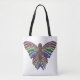 Um design criativo de borboleta, mostrando um espectro de cores em um efeito de pintura salpicada contra um fundo escuro.