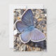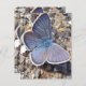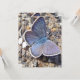 Grande bela borboleta azul clara sobre cascalho cinza, pedras pequenas