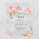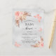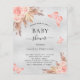 Para um chá de fraldas moderno estilo boho. Um fundo de olhar mal prateado. Decorados com ouro rosa e flores, rosas, erva-pampas e borboletas cor-de-rosa. Personalize e adicione um nome e detalhes da parte.