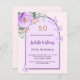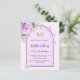 Um fundo cor-de-rosa com um arco roxo. Decorados com um verde-floral, rosa, de cor verde, verde-aquoso de eucalipto e borboletas. Personalize e adicione seu nome e detalhes da festa. 1 folha = 1 convite impresso de borda a borda.