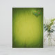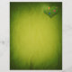 Linda ilustração romântica: relva em forma de coração com flores e borboleta em fundo verde-doce.