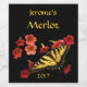 Personalize facilmente o texto deste belo rótulo da garrafa de vinho tinto, com uma borboleta de Swallowtail, amarela e preta, em flores vermelhas e rosa da Calibrachoa.