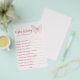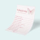 Capturar a alegria de acolher um novo bebê com o nosso adorável cartão "Desejos por Bebê", adorado com borboletas cor-de-rosa pastel. Perfeito para um chá de fraldas, este cartão proporciona um espaço sincero para os hóspedes partilharem os seus desejos e conselhos mais calorosos para os novos pais. Personalize-o com um toque único para torná-lo um bem-estar apreciado. Celebre esta ocasião especial com um belo cartão que complementa o seu chá de fraldas temático de borboletas!
