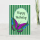 Borboleta e Cartão de Aniversário Verde Striped. Adicione seu próprio dentro de mensagem pessoal.