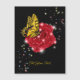 Borboleta em rosa vermelha com estrelas e gotas de