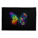 Arco-íris, borboleta monarca luminosa, pintada artisticamente com buquê de rosas iridescentes, brilhantes e luminescentes sobre fundo preto. Borboleta-arco-íris.