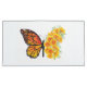 Borboleta de monarca laranja com asa decorada com papoila amarela e vibrante da Califórnia em fundo branco.