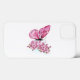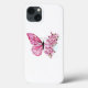 Arranjo de flores de borboleta cor-de-rosa com cereja japonesa cor-de-rosa floresce em fundo branco.