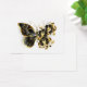 Borboleta de flores Dourada com orquídea de joias pretas, decorada com folhas de ouro sobre fundo branco.