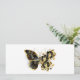 Borboleta de flores Dourada com orquídea de joias pretas, decorada com folhas de ouro sobre fundo branco.