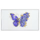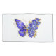 Borboleta de flores cinza, azul, safira, espumante com asa decorada com flores preciosos azuis com folhas de ouro sobre fundo branco.