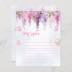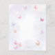 Design apresenta cores pastéis como lavanda, hortelã e rosa-bebê, adornada com flores de wisteria suaves e borboletas lúdicas.