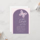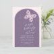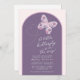 Borboleta Floral no Convite de Chá de fraldas de Voo. O design floral da borboleta está em uma variedade de romas poeirentos, pinks e blues. O fundo é roxo empoeirado com um sutil padrão de latência rosa ao redor da fronteira. Todas as cores (exceto a própria borboleta) podem ser alteradas e todos os outros elementos podem ser movidos, excluídos ou recoloridos, para que você possa criar um convite exclusivo apenas para você! © Kimbellish, LLC