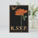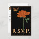 Uma carta de RSVP preto, encantadora e simples, para complementar seu papel de carta de casamento, seja Boho, chic rústico ou moderno. O RSVP preto profundo é embelezado por um solteiro perfeito de Dahlia laranja queimada e borboleta monarca e borda dourada. O inverso tem o texto tradicional de RSVP junto com um código de QR conveniente e econômico e um modelo para o seu site de casamento. Três maneiras de seus convidados responderem com facilidade ao seu convite de casamento.