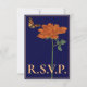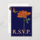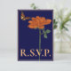 Uma bela placa RSVP azul marinho para complementar seu papel de carta de casamento, seja Boho, chic rústico ou moderno. o RSVP azul marinho é embelezado por uma solteiro perfeita laranja queimada Dahlia e borboleta monarca mais uma borda dourada. O inverso tem o texto tradicional de RSVP junto com um código de QR conveniente e econômico e um modelo para o seu site de casamento. Três maneiras de seus convidados responderem com facilidade ao seu convite de casamento.