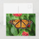 A magnífica Monarca exibindo seu belo padrão em meio a uma planta de lantana vermelha e amarela.