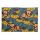 Um padrão sem costura desenhado à mão com conflitantes e borboletas monarcas.