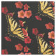 Este belo design de tecido floral de arte apresenta uma borboleta de Swallowtail, amarela e preta, de Tigre, em flores vermelhas e cor-de-rosa da Calibrachoa. Que ideia encantadora para jardineiros! Personalize facilmente o plano de fundo preto para a cor de sua escolha, de acordo com seu projeto especial.