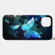 Fabulosa, brilhante, azul e amarela, borboleta noturna sobre fundo escuro.