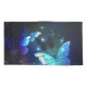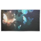 Fabulosa, brilhante, azul e amarela, borboleta noturna sobre fundo escuro.