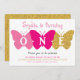 Borboleta Primeiro Convite de Aniversário | Rosa e Dourado ● © Puggy Impressões. Todos os direitos reservados.