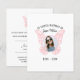 Esta é uma bela borboleta rosa, asas Celebração do convite da Vida. A frente apresenta a foto pessoal cercada por asas de borboletas cor-de-rosa com o verso fornecendo detalhes.