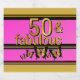 50 e fabuloso! Esta design é a captação de olhos, ousada, brilhante, e projetada para um presente ou favor de festa para alguém especial que comemora uma festa de aniversário 50ª. Centra-se em torno do texto "50 & fabuloso" numa cor brilhante de ouro brilhante com um contorno preto. Isso é colocado contra um plano de fundo rosa gradiente e tem uma sensação tridimensional. Este design de vidro também tem 5 belas borboletas pretas e douradas, com bonito fundo rosa. Este é um vibrante, atraente, na moda, e glam, 50º aniversário design a rosa, ouro, e preto para celebrar os cinquenta e fabulosos.