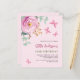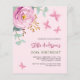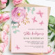 Um fundo de rosa claro. Decorado com uma rosa rosa-rosa e verde-aquoso, eucalipto verde e borboletas. Personalize e adicione seu nome e detalhes da festa. 1 folha = 1 convite impresso de borda a borda.