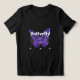 "Adote elegância com nossa camiseta roxa borboleta. Texto branco em uma camisa preta elegante adiciona um toque de graça e estilo. Perfeito para um chic, olá!"