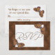 Cartão RSVP da linha marrom de chocolate de cobre da Coleção Brocade Butterfly para Casamentos. Haverá outras quatro vias de cores de tom joalheiro disponíveis, pavão, roxo, vermelho e uma linda verde verde-férn. O fundo é uma intrincada design de brocadas, não é levantada, será impressa em formato plano. As borboletas têm a aparência de vidro colorido e, como sábio, não são criadas. Tanto a cor quanto a seção branca do texto estão no padrão brocade. Também estarão disponíveis itens como postagem, números de tabelas, cartões de lugar de mesa, cartões de agradecimento, Salvar Data, recepção, cartões salve a data e outros produtos correspondentes.