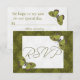 Cartão RSVP da linha verde-férn da Coleção Brocade Borboleta para Casamentos. Haverá outras quatro vias de cores de tom joalheiro disponíveis, pavão, roxo, vermelho e uma linda verde verde-férn. O fundo é uma intrincada design de brocadas, não é levantada, será impressa em formato plano. As borboletas têm a aparência de vidro colorido e, como sábio, não são criadas. Tanto a cor quanto a seção branca do texto estão no padrão brocade. Também estarão disponíveis itens como postagem, números de tabelas, cartões de lugar de mesa, cartões de agradecimento, Salvar Data, recepção, cartões salve a data e outros produtos correspondentes.