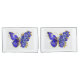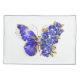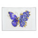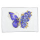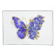 Joias, azul, safira, borboleta flor cintilante com asa decorada com flores azuis preciosas com folhas de ouro sobre fundo branco.