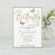 Esta é uma Borboleta Verde e um convite para Chás de fraldas temáticos Glitter Dourado. Este convite elegante inclui belas borboletas verdes de diferentes tons e uma fonte brilhante. Chá de fraldas para a menina, convites para chás de fraldas brilhantes, convites para chuveiros para bebês dourados, Uma borboleta pequena está a caminho!
