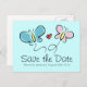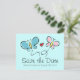 Borboleta branca salva os cartões postais de casamento. Design de ilustração romântica bonita de duas borboletas reluzentes, parecidas com a noiva e o noivo, com um pequeno coração de amor vermelho no meio. Cor de fundo personalizada, isto é, menta.