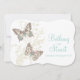 Lindas borboletas de arte gráfica e convite para o casamento de espirais florais em creme de marfim, chalé aqua, rosa e castanho. Design de casamento moderno e fascinante das borboletas gráficas do conjunto de papéis de carta de casamento. Bonito sombras pastel. Edite este convite com seu próprio nome, datas e palavras. Desenho exclusivo e design por Sarah Trett.
