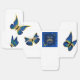 Barrafas de ouro e azuis é uma bela maneira de dizer obrigado aos seus convidados de Quinceanera. Borboletas e tiara podem ser facilmente redimensionadas e reposicionadas no obrigado que você oferece.
