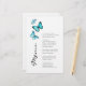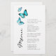 Azul, cor d'água, belas borboletas. Na moda moderno menu de casamento do rico.