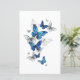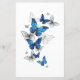 Borboletas azuis voadoras morfo e borboletas brancas em um fundo de abstrato leve. Morpho. Design com borboletas azuis morfo.