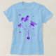 Um belo desenho de borboletas feito em púrpuras e pinks saindo de uma flor cercada por estrelas em uma camisa!