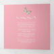 Um programa de renovação de casamento ou cerimônia de casamento de seis páginas. Edite este programa de casamento com seus próprios nomes, datas, apresentação, texto da cerimônia, assistentes de festa de casamento, foto do seu primeiro elopeio ou casamento restrito, ou uma foto do seu noivado, e adicione suas próprias palavras de obrigados no verso. Estão disponíveis borboletas cor-de-rosa, castanho, lacas e creme, bem como outros produtos de casamento coloridos e opções de cores. Arte e design originais pintadas com borboleta por Sarah Trett para www.mylittleedenweddings.com no Zazzle.