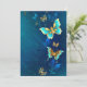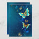 Ouro voador, borboleta de joias em fundo textural azul. Design com borboletas.