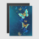 Ouro voador, borboleta de joias em fundo textural azul. Design com borboletas.