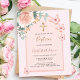 Um fundo cor-de-rosa pincelado com um arco dourado rosa. Decorados com ouro rosa e borboletas cor-de-rosa esbranquiçada, rosa, eucalipto verde e borboletas. Personalize e adicione um nome e detalhes. Traseira: cor de fundo cor-de-rosa pincelada. 1 folha = 1 convite impresso de borda a borda.